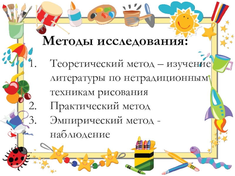 Слайд 8Теоретический метод – изучение литературы по нетрадиционным техникам рисования