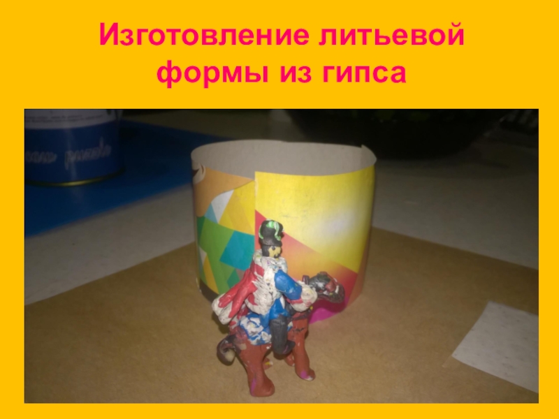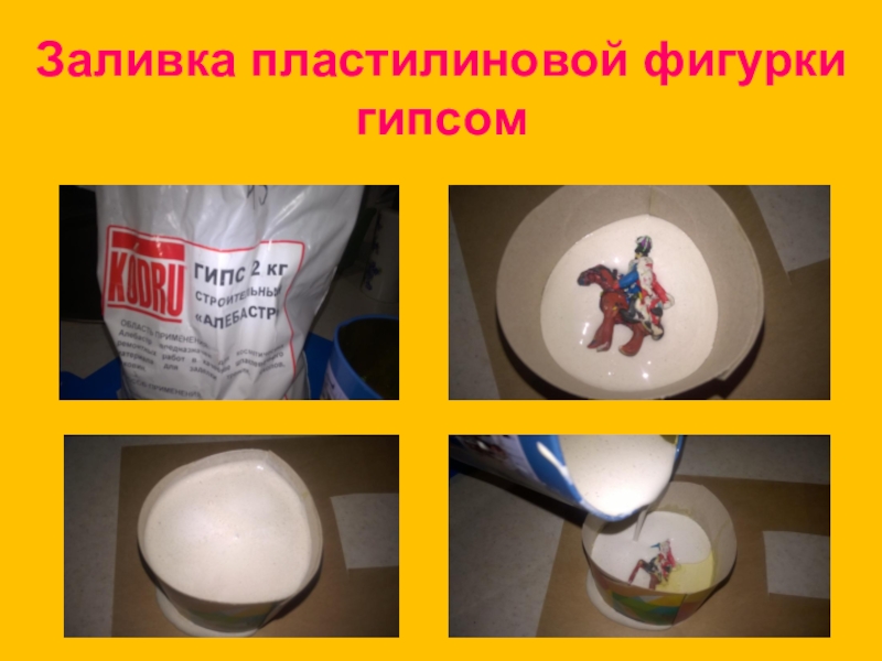 Слайд 7Заливка пластилиновой фигурки гипсом
