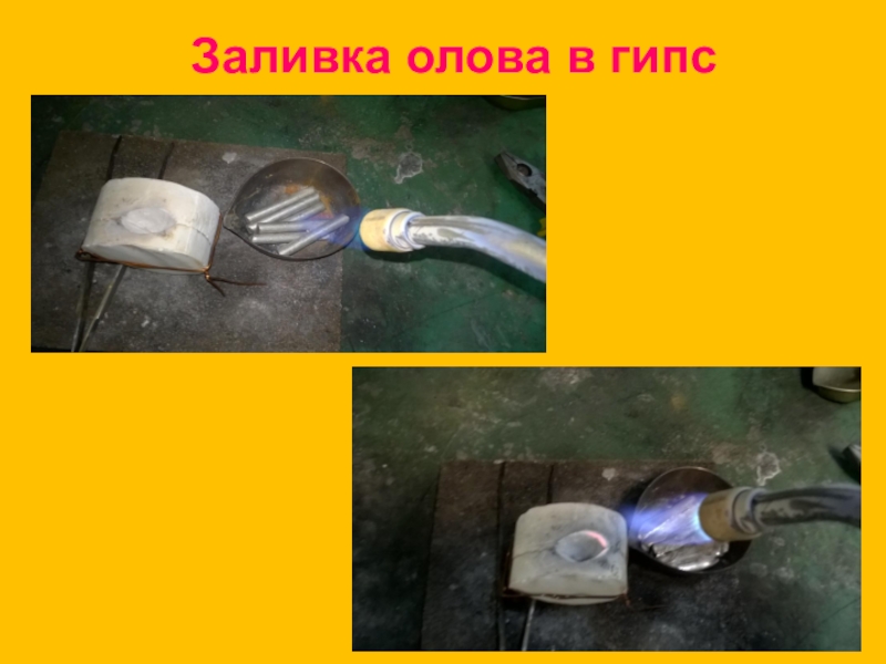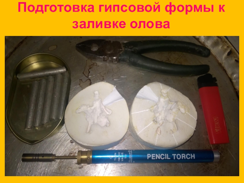 Слайд 8Подготовка гипсовой формы к заливке олова