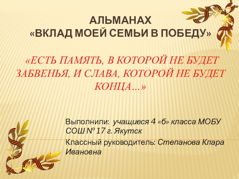 Выполнили: учащиеся 4 «б» класса МОБУ СОШ № 17 г. Якутск