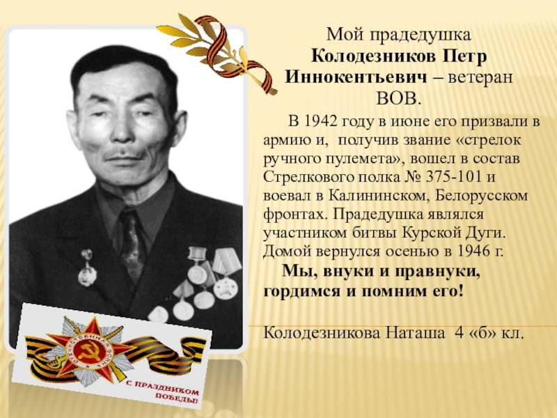 Колодезников Петр Иннокентьевич – ветеран ВОВ.