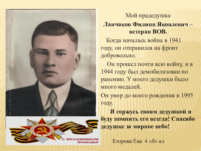 Ланчаков Филипп Яковлевич – ветеран ВОВ.