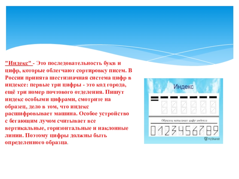 "Индекс" - Это последовательность букв и цифр, которые облегчают сортировку писем. В