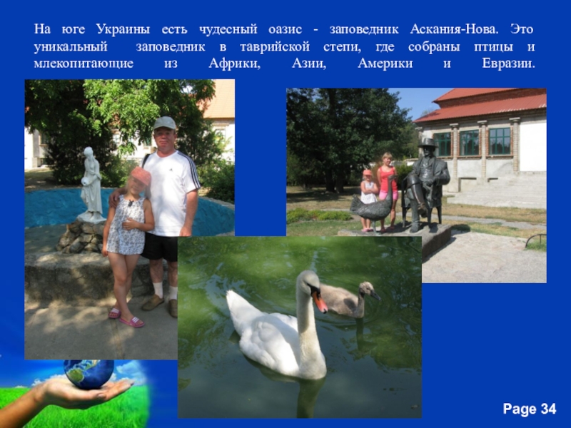 Слайд 34На юге Украины есть чудесный оазис - заповедник Аскания-Нова. Это уникальный