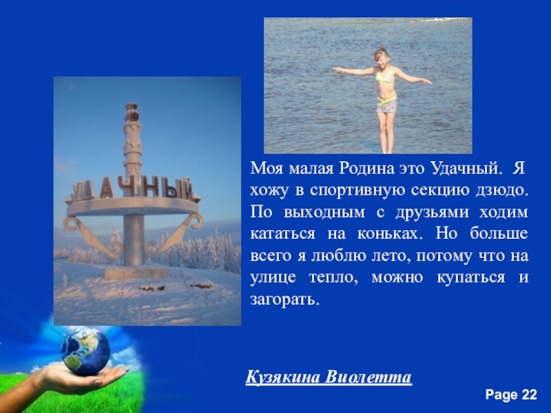 Слайд 22Моя малая Родина это Удачный. Я хожу в спортивную секцию дзюдо.