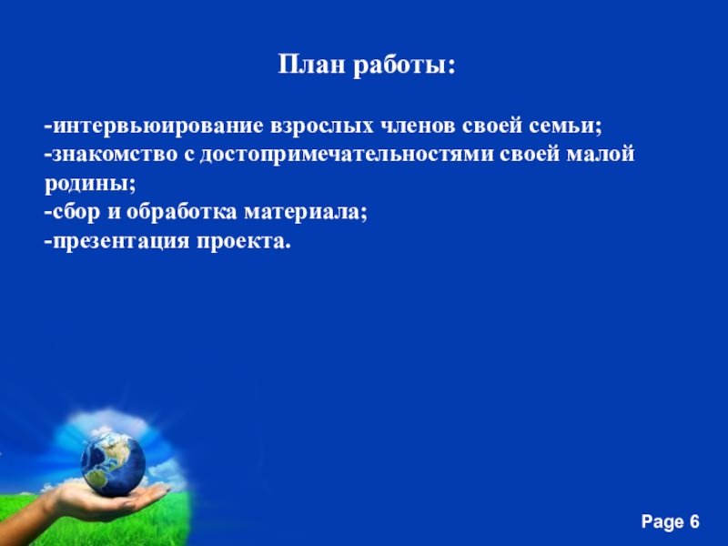 — интервьюировать членов своей семьи об истории и достопримечательностях своей малой родины;