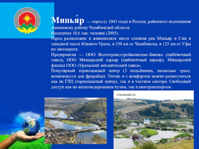 Слайд 9Минья́р — город (с 1943 года) в России, районного подчинения Ашинскому
