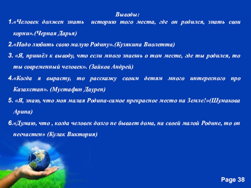«Надо любить свою малую Родину».(Кузякина Виолетта)