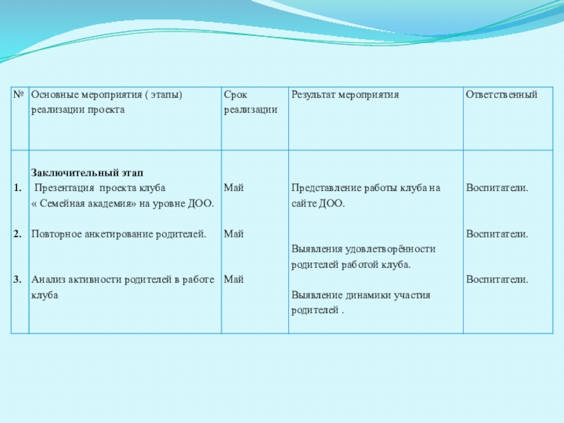 Клуб  «Семейная академия»Статус проекта: долгосрочный.Сентябрь 2017г.- май 2018г.
