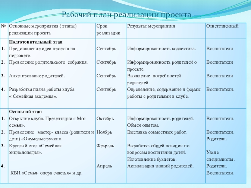 Слайд 6Рабочий план реализации проекта