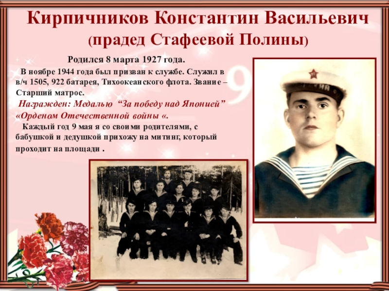 8 мая 1945 года гитлеровская Германия капитулировала. Но война еще не кончилась. Для моего прадеда она закончится лишь 3 сентября 1945 года.