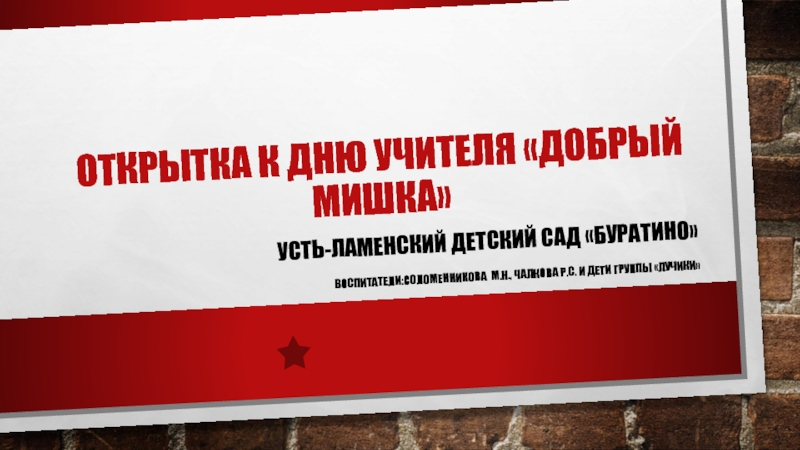 Это сайт презентаций, где можно хранить и обмениваться своими презентациями, докладами, проектами, шаблонами в формате PowerPoint с другими пользователями. Мы помогаем школьникам, студентам, учителям, преподавателям хранить и обмениваться учебными материалами.