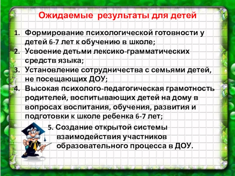 5. Создание открытой системы взаимодействия участников образовательного процесса в ДОУ.