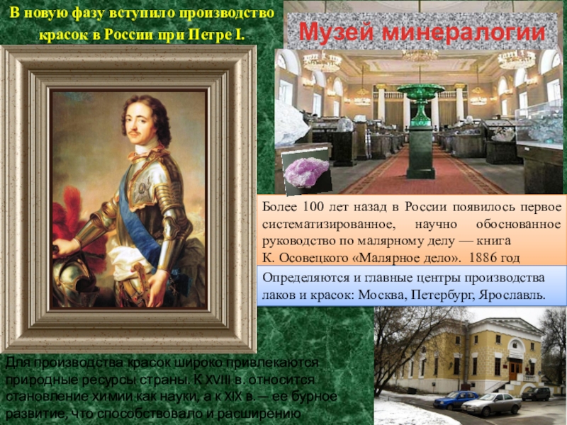 Определяются и главные центры производства лаков и красок: Москва, Петербург, Ярославль.