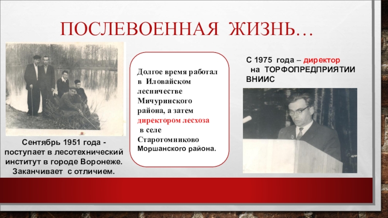 Долгое время работал в Иловайском лесничестве Мичуринского района, а затем директором лесхоза