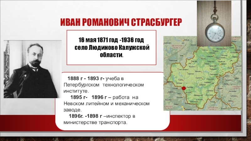 1896г. -1898 г –инспектор в министерстве транспорта.