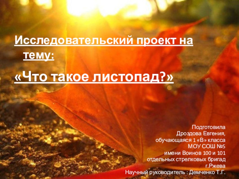 Научный руководитель : Демченко Т.Г.