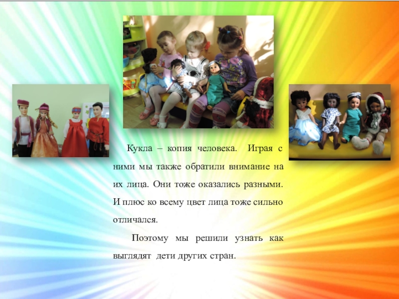Слайд 12 Кукла – копия человека. Играя с ними мы также