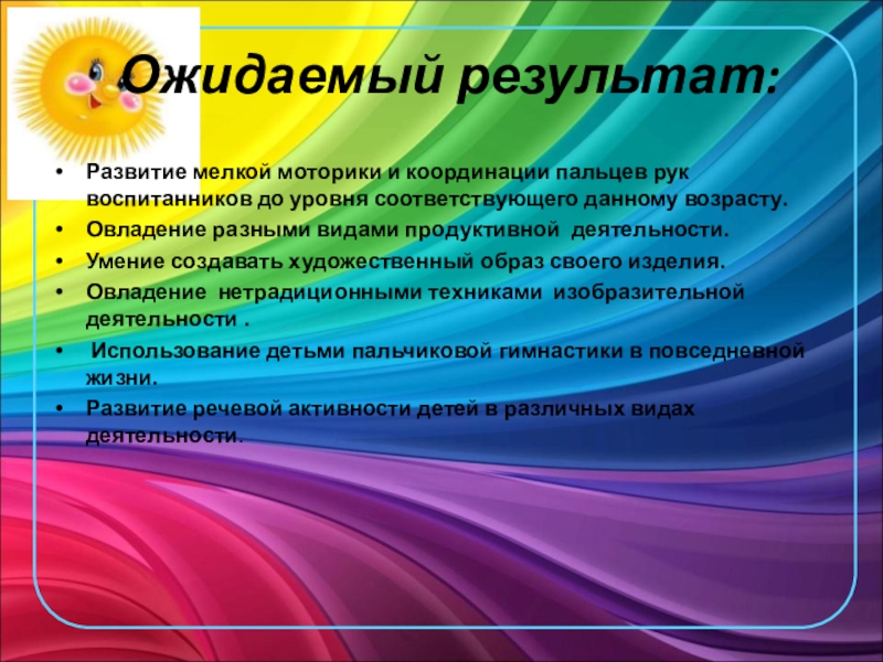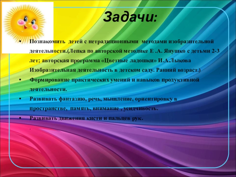 (продуктивной деятельности,индивидуальной работе,на прогулке,утренней гимнастике,самообслуживание,использование нетрадиционных приёмов.) Сотрудничество с родителями .
