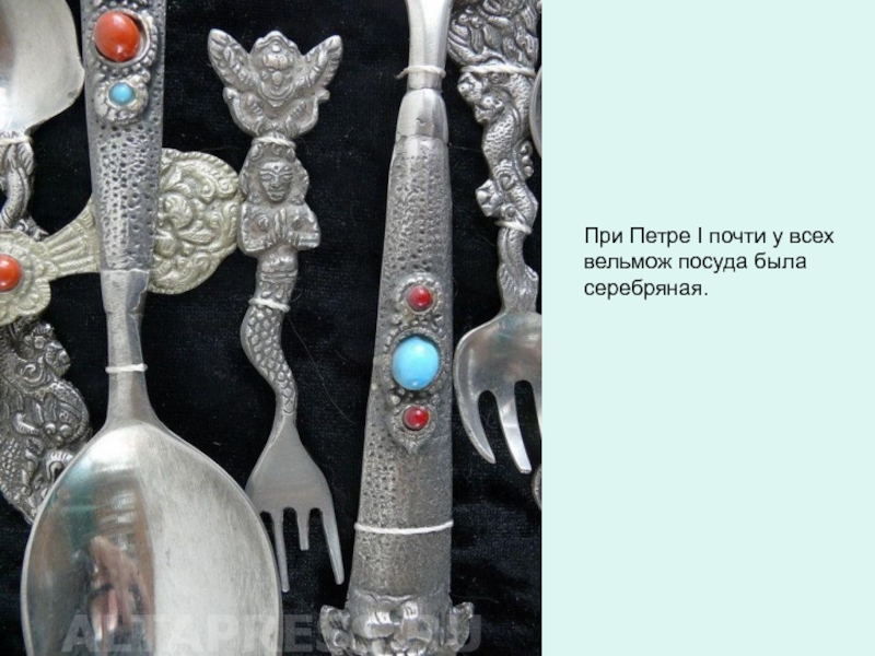 Слайд 17При Петре I почти у всех вельмож посуда была серебряная.