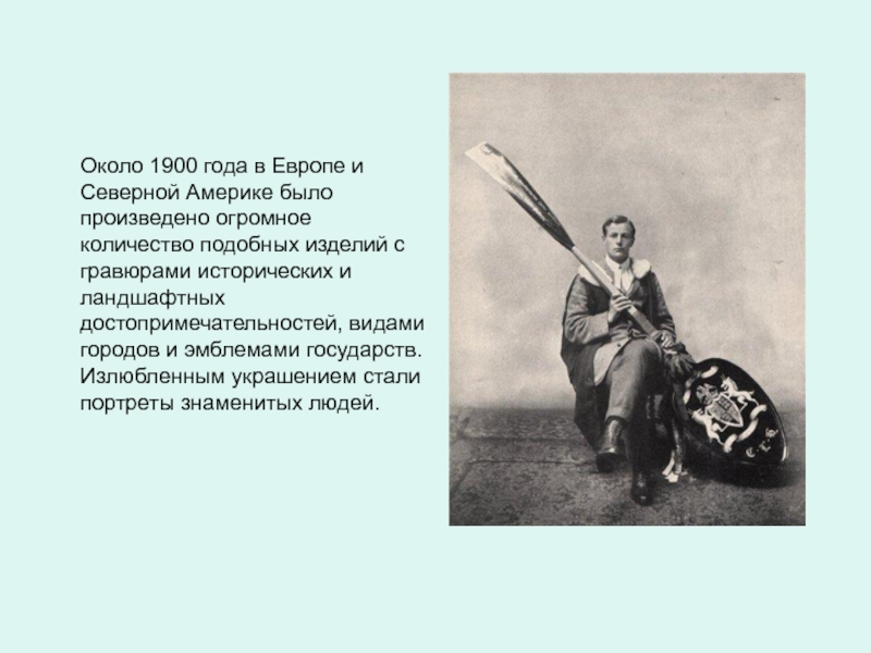 количество подобных изделий с гравюрами исторических и ландшафтных достопримечательностей, видами городов и эмблемами государств. Излюбленным украшением стали портреты знаменитых людей.