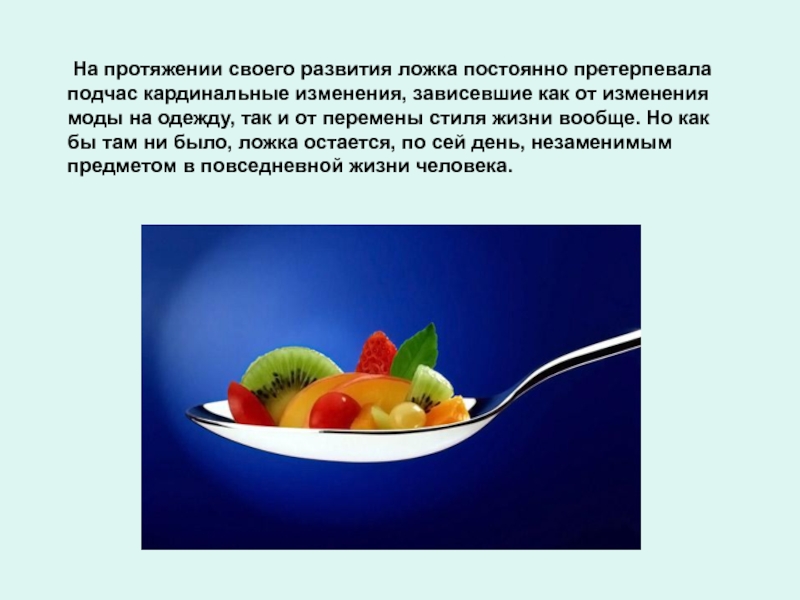 Слайд 25 На протяжении своего развития ложка постоянно претерпевала подчас кардинальные изменения,