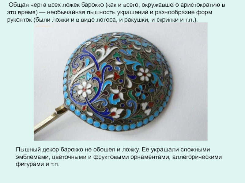 Слайд 8 Общая черта всех ложек барокко (как и всего, окружавшего аристократию