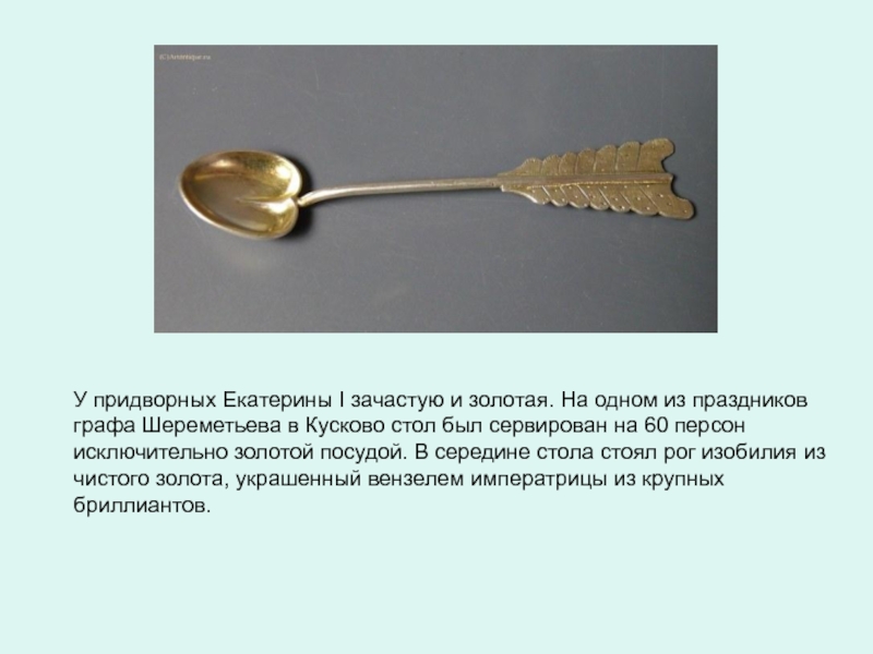 Слайд 18У придворных Екатерины I зачастую и золотая. На одном из праздников