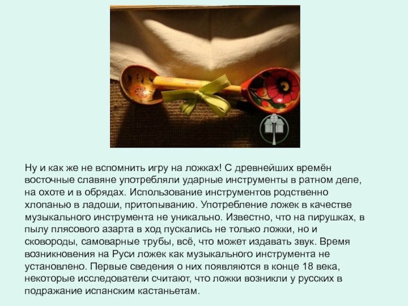 Слайд 23Ну и как же не вспомнить игру на ложках! С древнейших