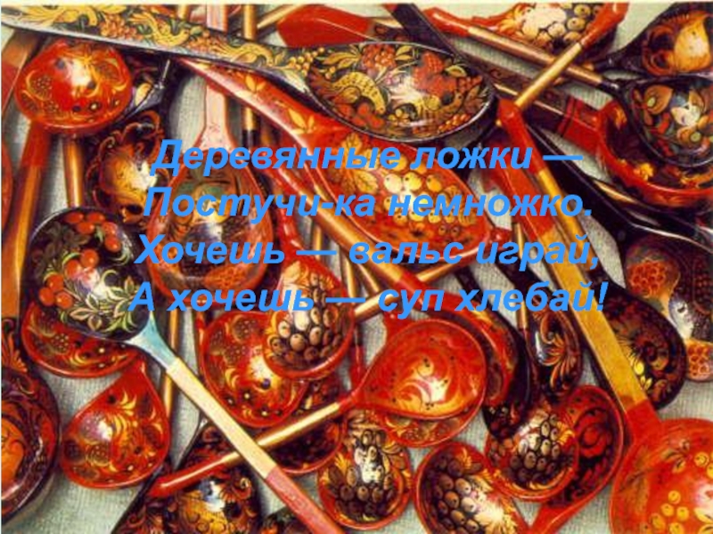Слайд 1Деревянные ложки — Постучи-ка немножко.