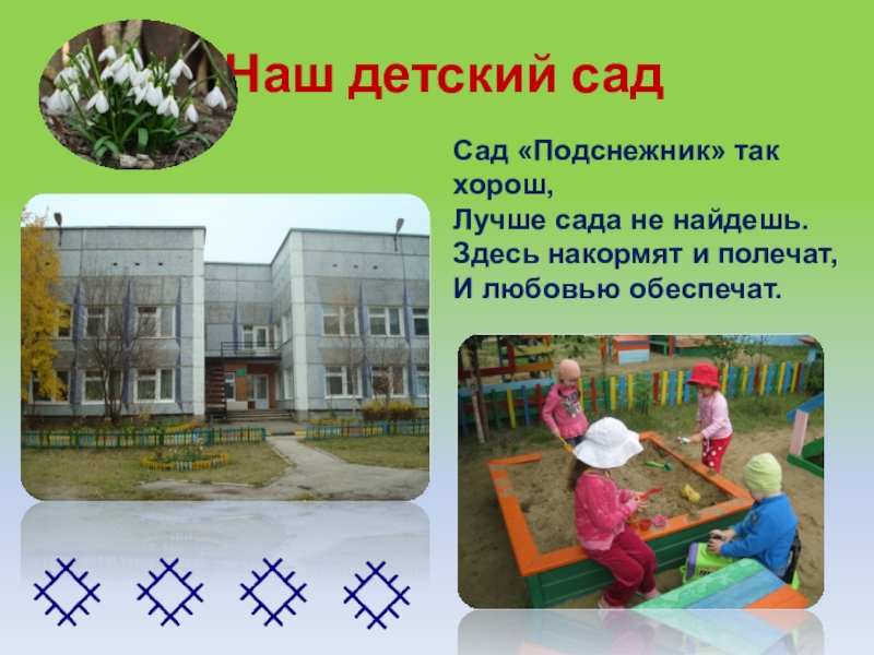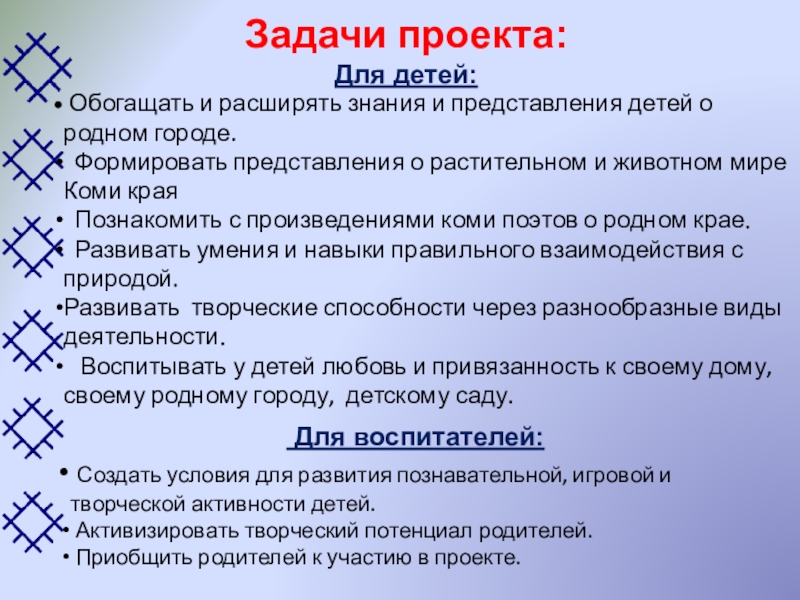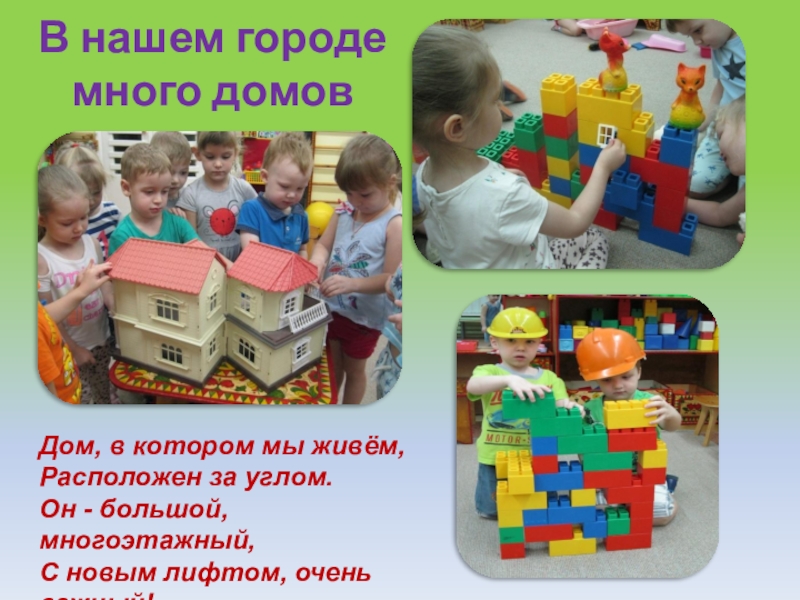Воспитывать у детей любовь и привязанность к своему дому, своему родному городу, детскому саду.