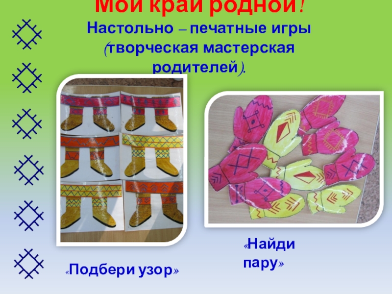 Изготовление родителями настольно – печатных игр: «Найди пару», «Подбери узор»