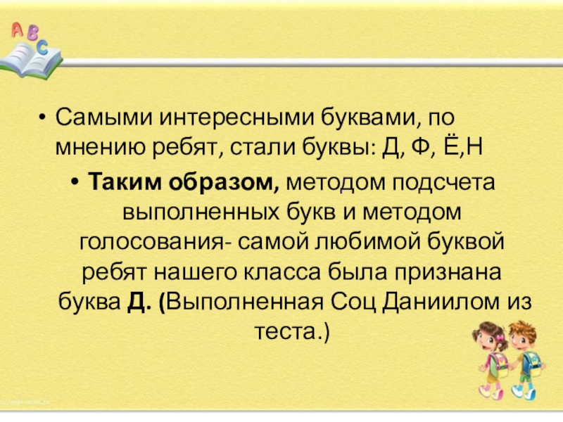 А мы решили выяснить, есть ли у детей буквы самые любимые.
