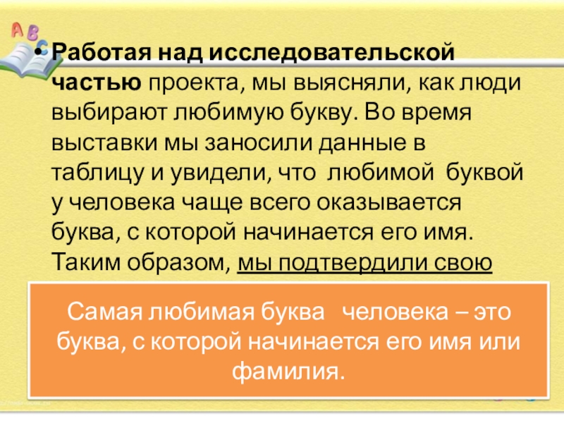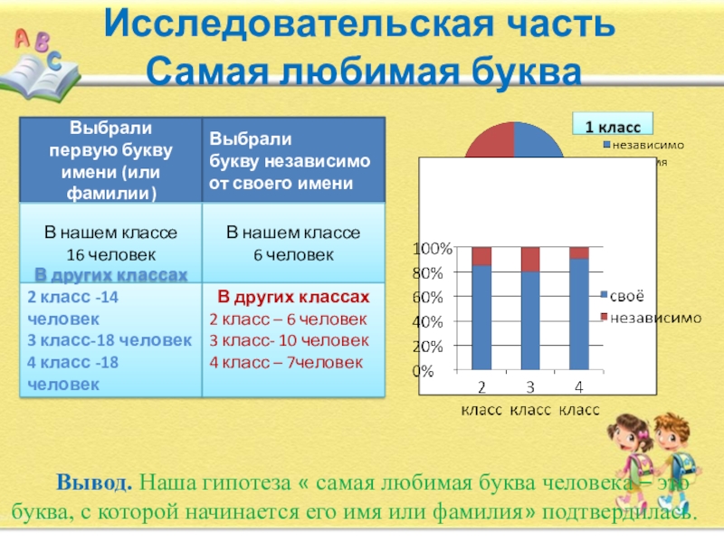 Вывод. Наша гипотеза « самая любимая буква человека – это буква, с которой начинается его имя или фамилия» подтвердилась.