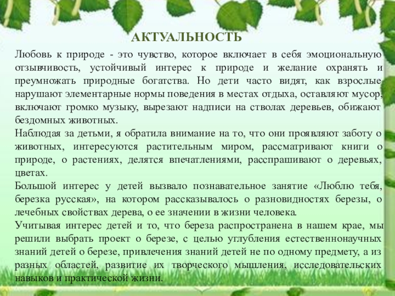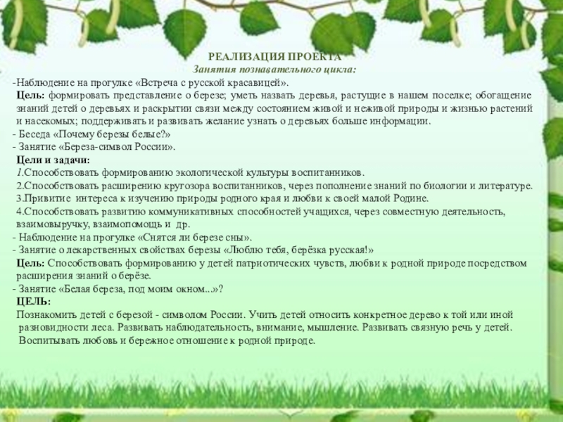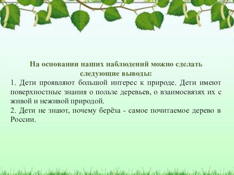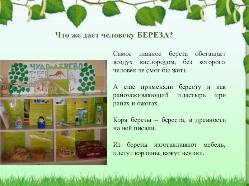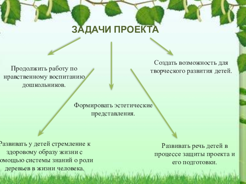 Развивать у детей стремление к здоровому образу жизни с помощью системы знаний о роли деревьев в жизни человека.