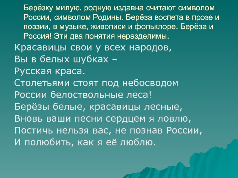 Берёзы белые, красавицы лесные,
