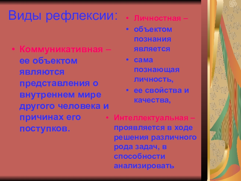 Интеллектуальная – проявляется в ходе решения различного рода задач, в способности анализировать