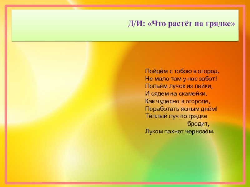 Цель: формирование представлений у детей о луке и его полезных свойствах.