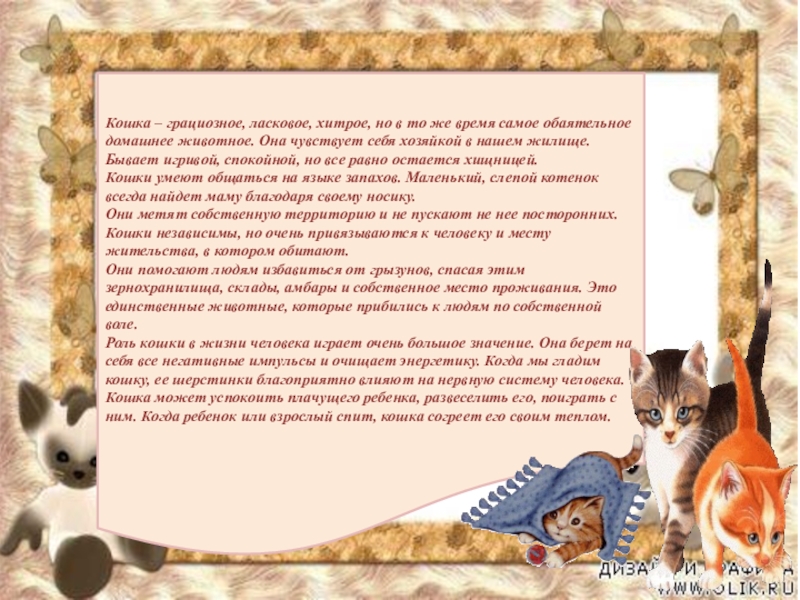 Кто кошек любит, будет жену любить.
