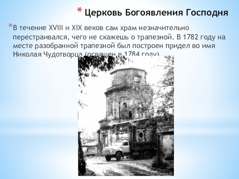 перестраивался, чего не скажешь о трапезной. В 1782 году на месте разобранной трапезной был построен придел во имя Николая Чудотворца (освящен в 1784 году).