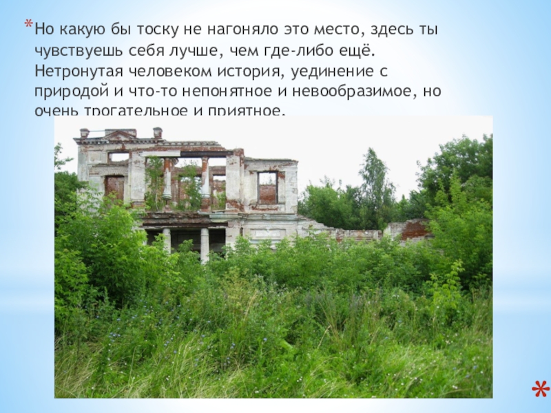 Но какую бы тоску не нагоняло это место, здесь ты чувствуешь