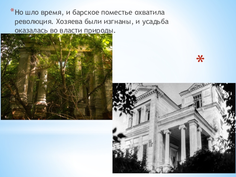 Но шло время, и барское поместье охватила революция. Хозяева были изгнаны,