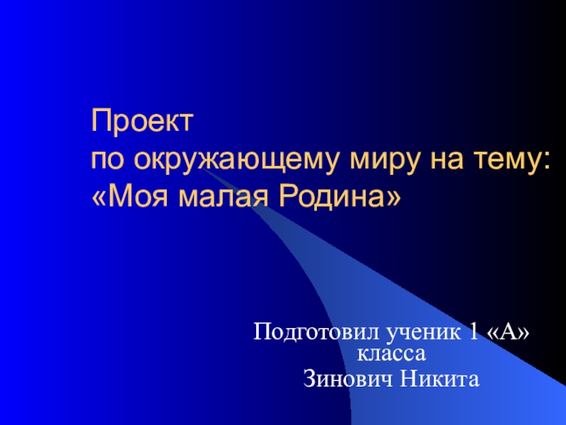 Проект по окружающему миру на тему: «Моя малая Родина»Подготовил ученик 1 «А» класса Зинович Никита
