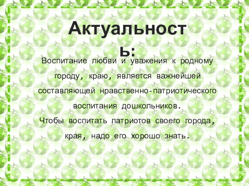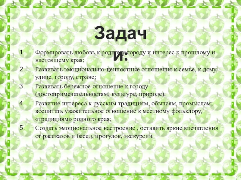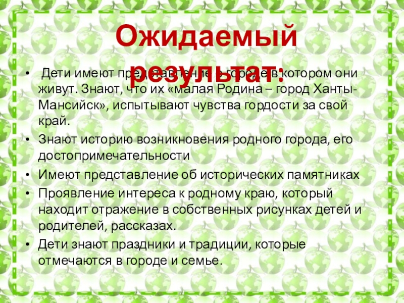 Воспитать патриотические чувства, гордости за место, где они живут,