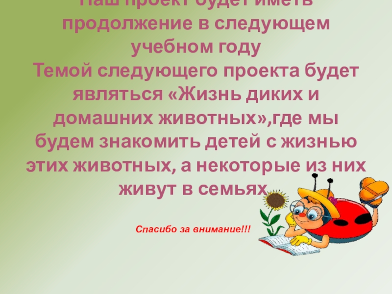 Также планируется проведение родительского собрания на тему: Родительское собрание: «Вот мы выросли на год» , где будут подведены итоги проектной деятельности в нашей группе.
