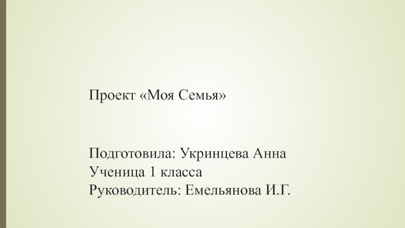 Проект «Моя Семья»Подготовила: Укринцева Анна Ученица 1 классаРуководитель: Емельянова И.Г.