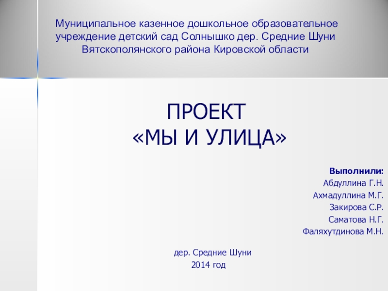 Муниципальное казенное дошкольное образовательное учреждение детский сад Солнышко дер. Средние Шуни Вятскополянского района Кировской области