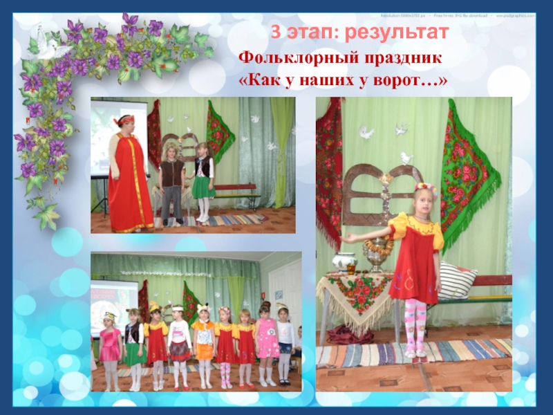 Продолжить знакомить детей с основами национальной культуры, языком, литературой, историей своего этносоциума, используя для этого фольклорный материал.