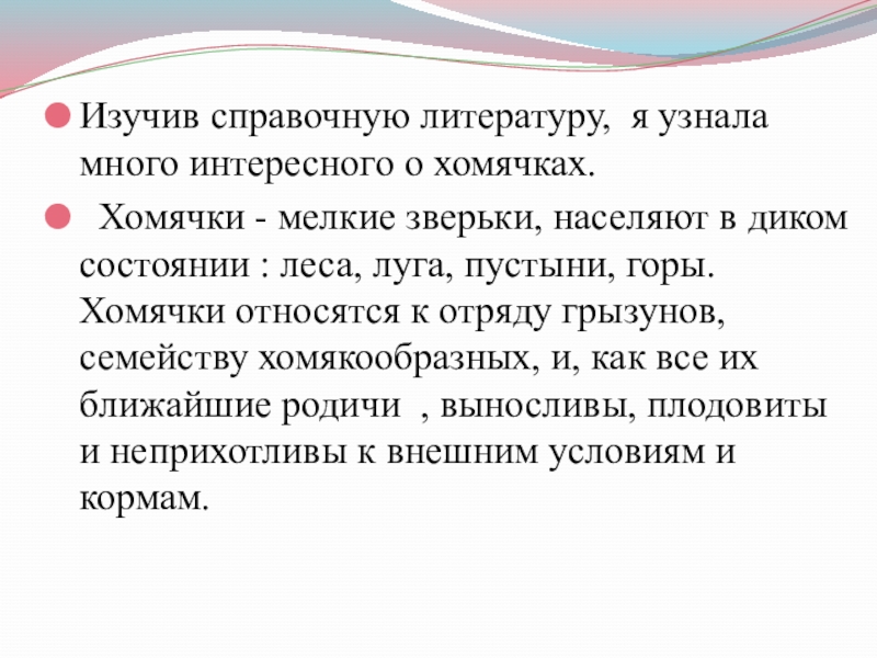 Слайд 5Изучив справочную литературу, я узнала много интересного о хомячках.