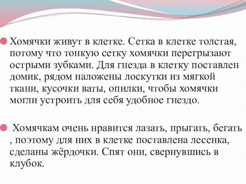 Слайд 17Хомячки живут в клетке. Сетка в клетке толстая, потому что тонкую